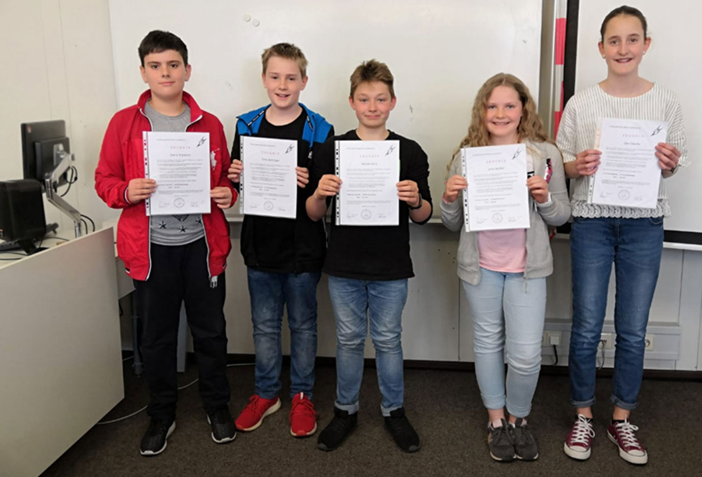 Zoe Oberle wurde mit 1.669 Anschlägen Landessiegerin aus den teilnehmenden Vereinen des Südwestdeutschen Stenografenverbandes, im Bundesgebiet erreichte sie einen 5. Platz. Der Vereinsvorsitzende Gerhard Meier und Schulleiter Peter Bechtold gratulierten zum Erfolg mit einem Präsent sowie einer Urkunde.