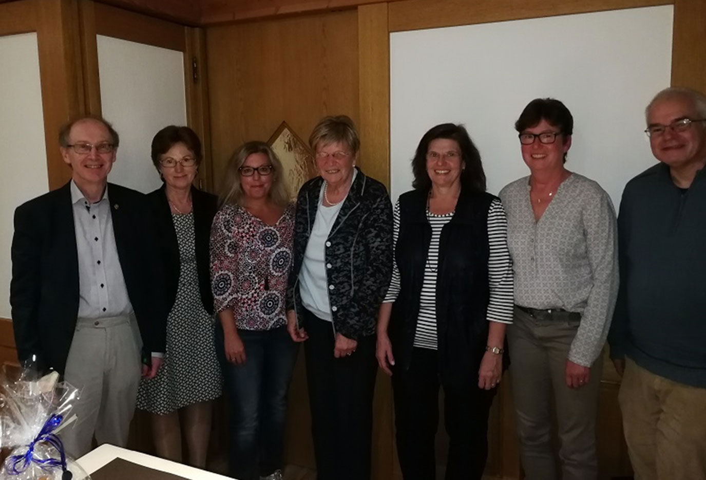 Bild (Jubilare) v. l. Gerhard Meier, Ursula Kimmig, Beate Brommer, Ingeborg Müller, Renate Klumpp, Christa Haas, Burkhard Streif