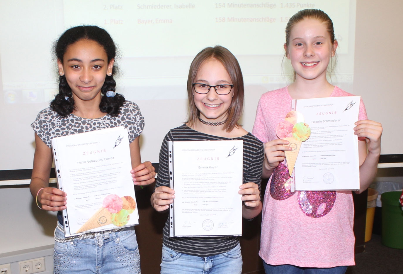 Auch in der Abschlussprüfung war Emma Bayer die beste Schülerin. Knapp dahinter folgt Isabelle Schmiederer auf dem zweiten Platz. Emilia Velázquez Correa war drittbeste Schreiberin.