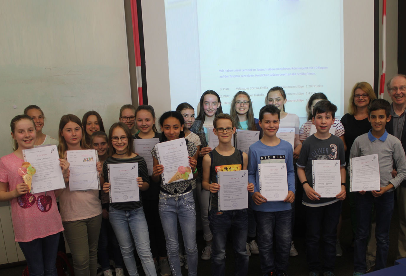 Und das Letztere können jetzt 26 Schüler/innen aus den 6. Klassen des Hans- Furler-Gymasiums in Oberkirch. Seit Oktober 2017 haben sie das Blindschreiben in einer Arbeitsgemeinschaft auf der Tastatur erlernt.